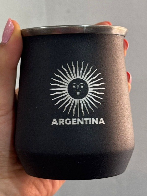 Mate de acero inoxidable grabado.