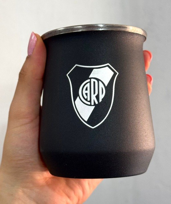 Mate de acero inoxidable grabado.